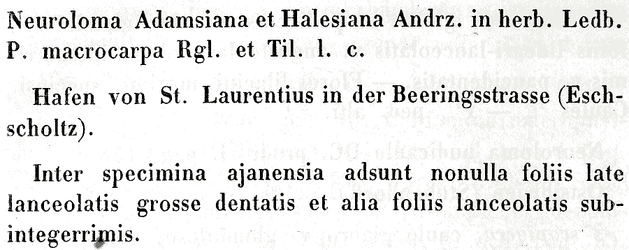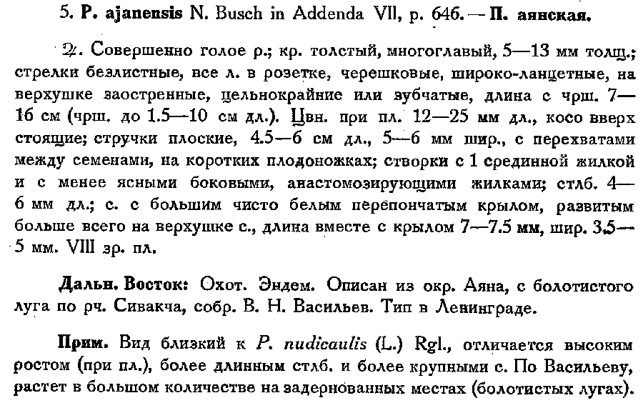 Протолог Parrya ajanense N. Busch (Флора СССР 8: 646, 261. 1939):