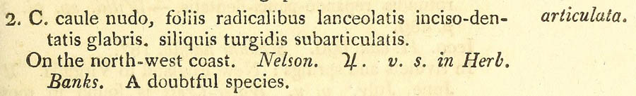 | Андрей Ковальчук | Протолог Cardamine articulata Pursh (Flora Americae Septentrionalis; or, a Systematic Arrangement and Description of the Plants of North America 2: 439. 1813 [Dec 1813]):