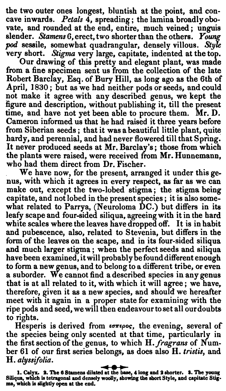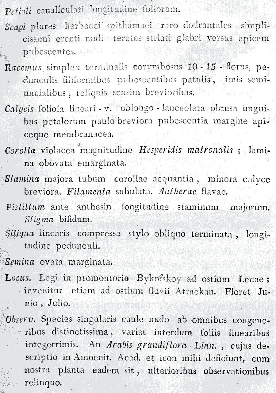 | Андрей Ковальчук | Андрей Ковальчук пишет:Видимо, так. Но вопрос, соответствует ли растение на рисунке "Hesperis speciosa" Parrya nudicaulis, остаётся открытым.
