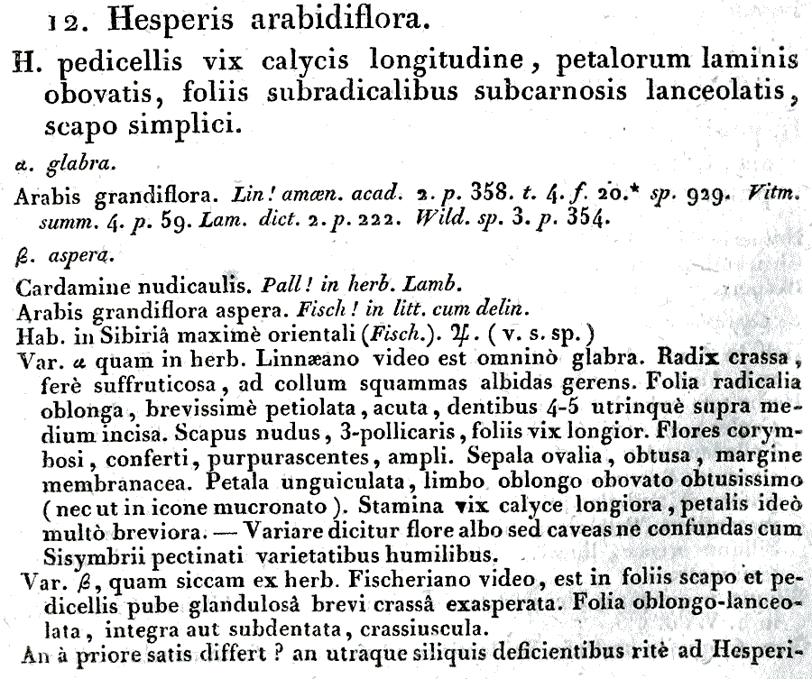 | Андрей Ковальчук | Обнародование комбинации Hesperis arabidiflora DC., nom. illegit. (Regni Vegetabilis Systema Naturale 2: 454. 1821 [late May 1821]):