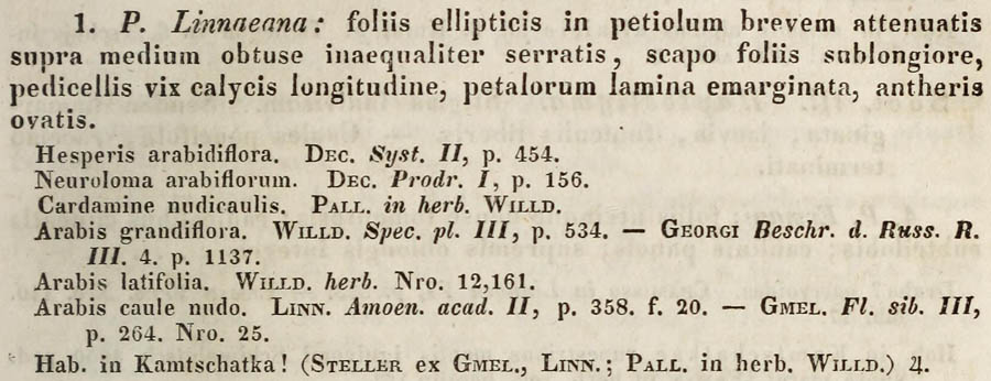 | Андрей Ковальчук | Обнародование комбинации Parrya linnaeana Ledeb., nom. illegit. (Flora Rossica 1(1): 131. 1841):