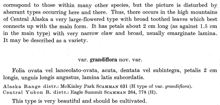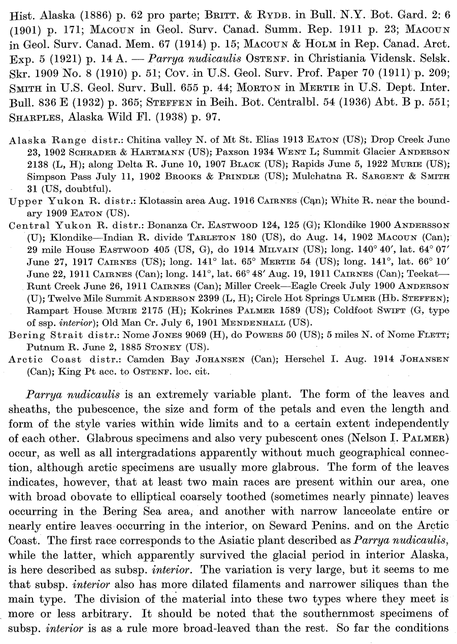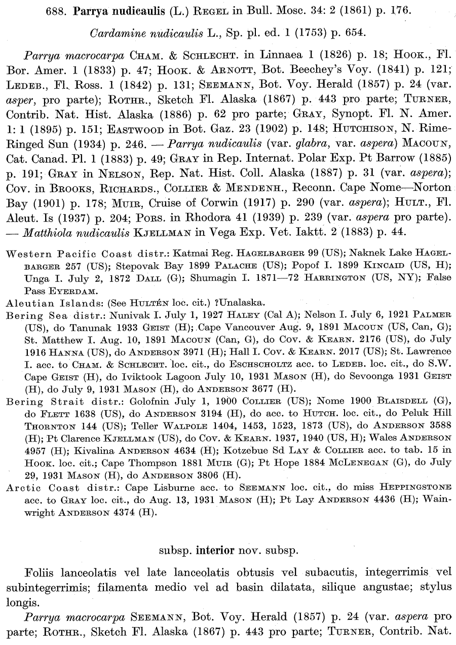 Протолог Parrya nudicaulis ssp. interior Hultén и Parrya nudicaulis var. grandiflora Hultén (Lunds Universitets Årsskrift. Afdelningen for mathematik och naturvetenskap 41: 890-892. 1945):