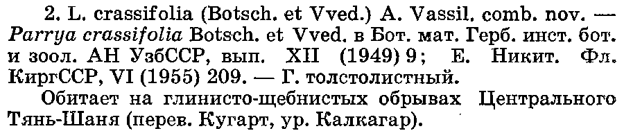 | Андрей Ковальчук | Протолог Parrya crassifolia Botsch. & Vved. (Ботанические материалы гербария Института ботаники и зоологии Академии наук УзССР 12: 9. 1948):