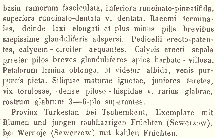 | Андрей Ковальчук | Протолог Chorispora hispida Regel (Bulletin de la Société impériale des naturalistes de Moscou 43(2): 266(-267). 1870):