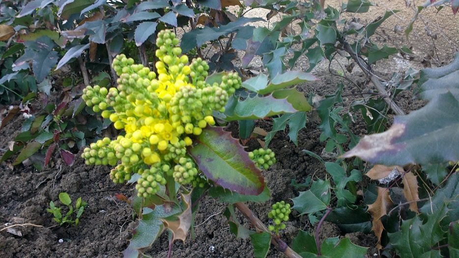 Высотой полметра от земли примерно. Листья падуб напоминают. Феодосия, конец марта
