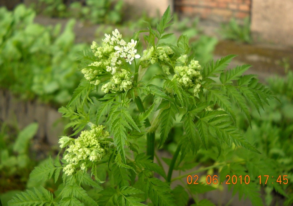 Вот ещё один зонтик. у цветков - слабый "солоноватый" запах. Его везде полно: на лугу, в лесу, на склонах, на городских пустырях и газонах. Только в болоте нет. |