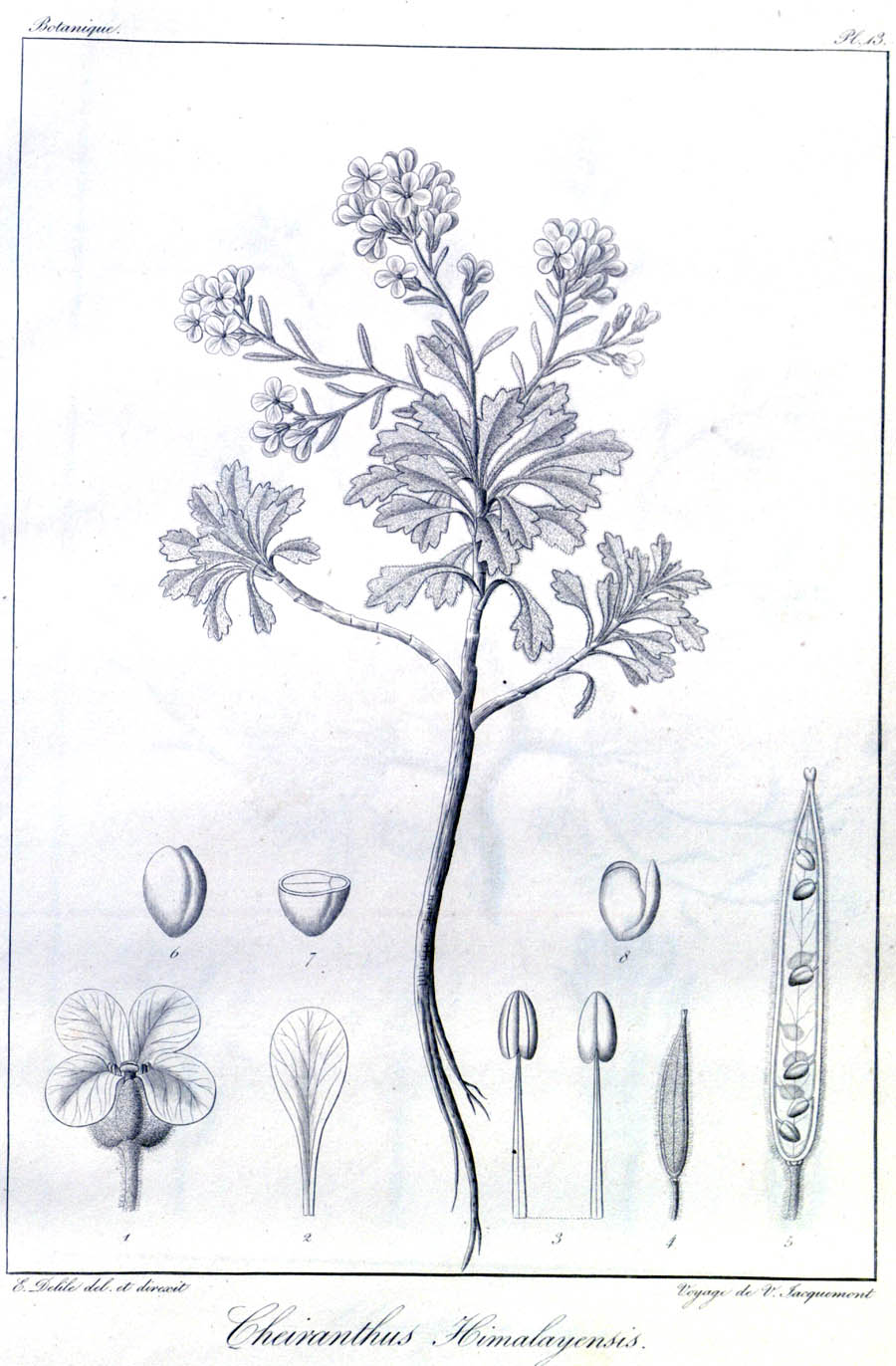 Протолог Cheiranthus himalayensis Cambess. и сопровождающая его иллюстрация (Voyage dans l'Inde pendant les annees 1828 a 1832 4(Bot.): 14, t. 13. [Apr 1835 - Dec 1844]):