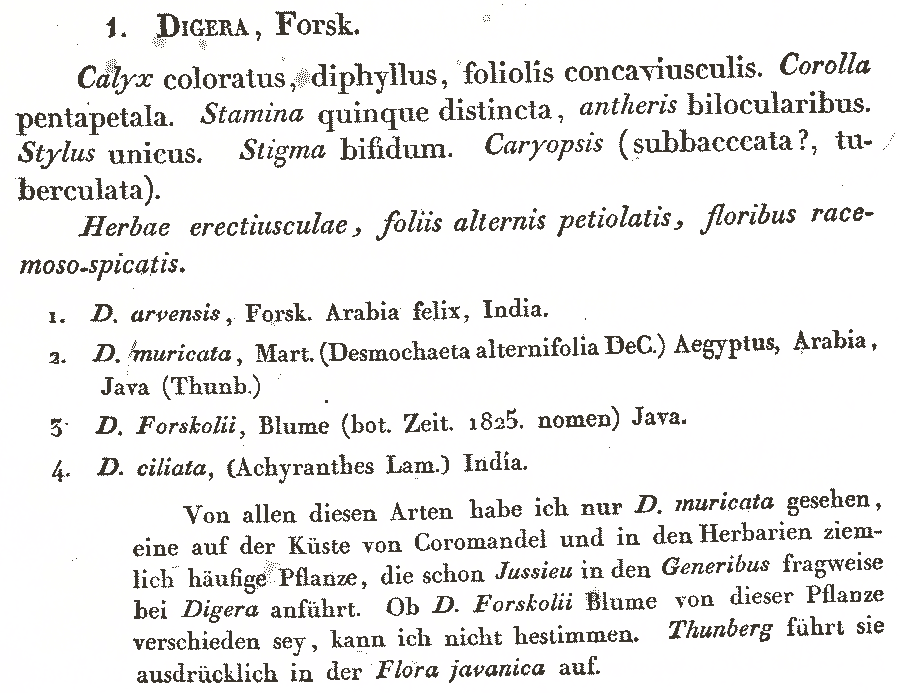Протолог Digera arvensis Forssk. (Flora Aegyptiaco-Arabica 65 (1775). [1 Oct 1775]):
