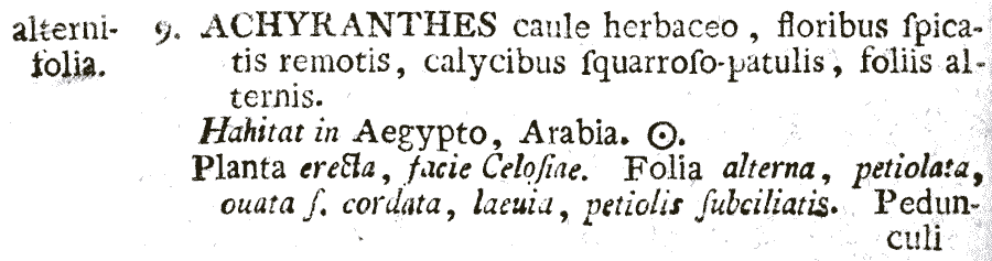 Протолог Achyranthes alternifolia L. (Mantissa Plantarum: 50(-51). 1767):