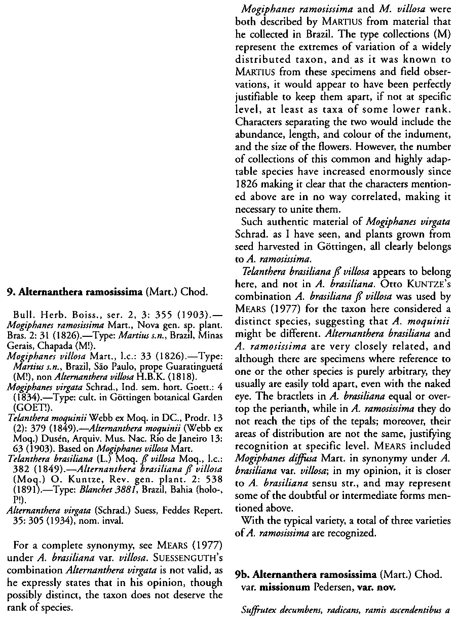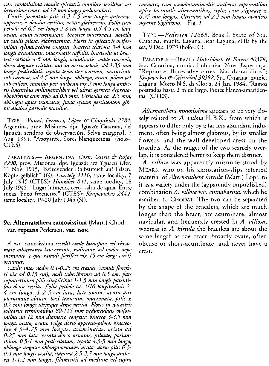 | Андрей Ковальчук | Протологи Alternanthera ramosissima var. missionum Pedersen и Alternanthera ramosissima var. reptans Pedersen (Adansonia sér. 3, 19(2): 223-224. 1997):
