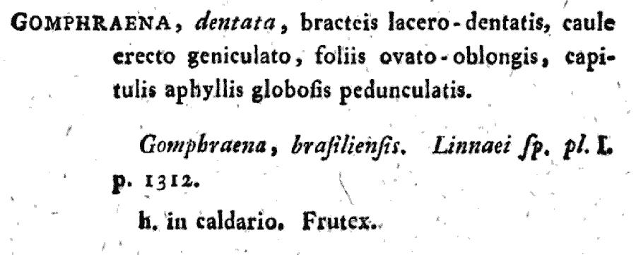 Протолог Gomphrena brasiliana L. (Centuria II Plantarum: 13. 1756):