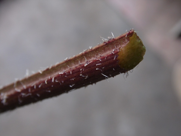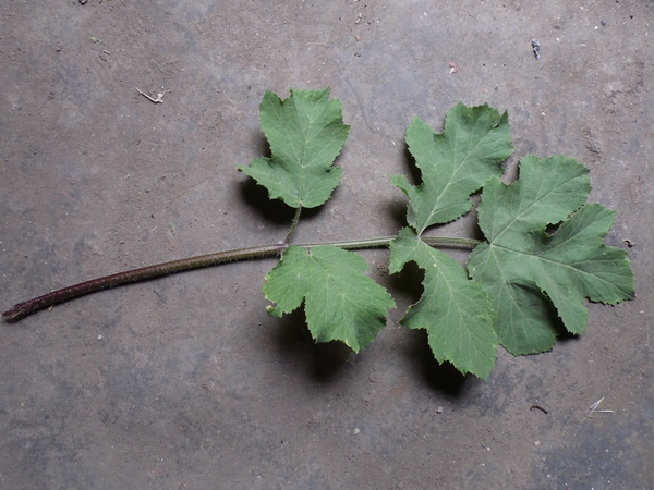 | Оксана Малойчикова | Сегодня срезала лист, сфотографировала. Желобок по черешку - один, по лицевой стороне. Стебель не полый, растение ничем не пахнет (размяла обрезок стебля) |
