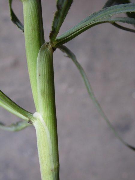 Подрастающее растение сизоватого цвета, высота ок. 20 см, сорвано под корень (выкопать совочком не получилось, корень глубокий и крепкий, вроде стержневой). Сорвано возле ж.д. насыпи за городом. Ростов-на-Дону, 01.06.2017.
