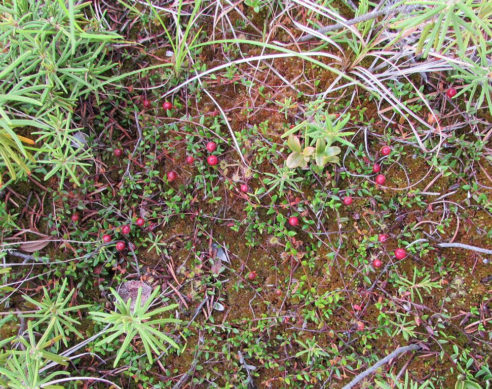 Видимо это Клюква мелкоплодная - Oxycoccus microcapus