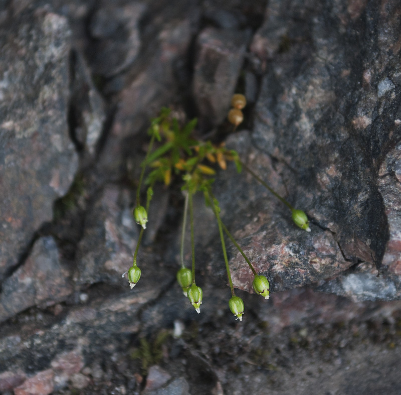 Берег Баренцева моря, на камне, наверняка снег там недавно растаял. 4 чашелистика, коробочка с 4 створками.