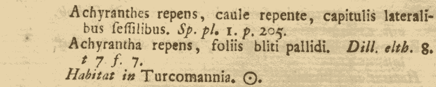 Протолог Achyranthes repens L. (Species Plantarum 1: 205. 1753 [1 May 1753]):