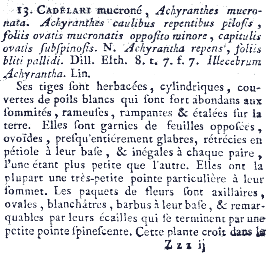 | Андрей Ковальчук | Обнародование комбинации Achyranthes mucronata Lam. (Encyclopedie Methodique. Botanique 1(2): 547(-548). 1785 [1 Aug 1785]):