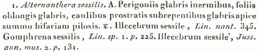 Протолог Gomphrena sessilis L. (Species Plantarum 1: 225. 1753 [1 May 1753]):