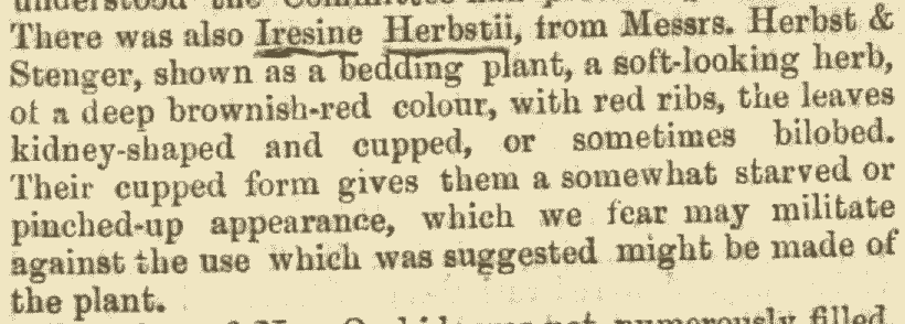 | Андрей Ковальчук | Протолог Iresine herbstii Hook. (Gardeners' Chronicle: 654. 1864 [9 July 1864]):