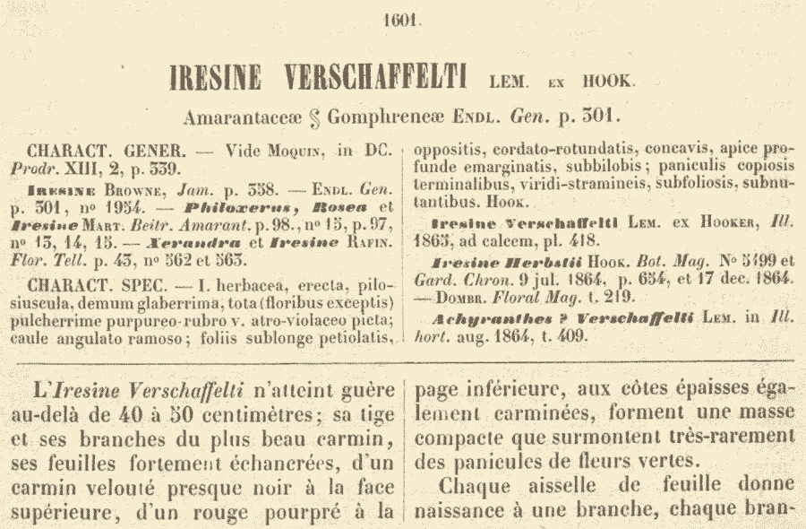 | Андрей Ковальчук | Обнародование комбинации Iresine verschaffeltii Lem. и сопровождающая его иллюстрация (Flore des Serres et des Jardins de l'Europe 15: 191, t. 1601. 1864-1865):