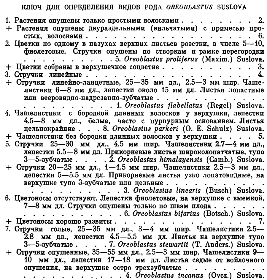 | Андрей Ковальчук | Ключ из статьи Т. А. Сусловой "Новый род из сем. Cruciferae Juss." (Ботанический журнал 57(6): 647-653. 1972):