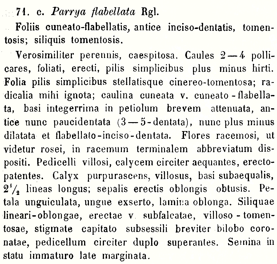 | Андрей Ковальчук | Протолог Parrya flabellata Regel (Bulletin de la Société impériale des naturalistes de Moscou 43(2): 261. 1870):