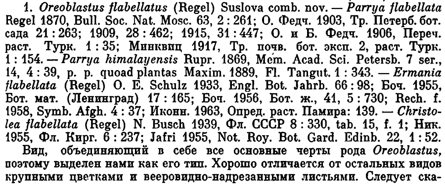 | Андрей Ковальчук | Обнародование комбинации Oreoblastus flabellatus (Regel) Suslova (Ботанический журнал 57(6): 651. 1972):