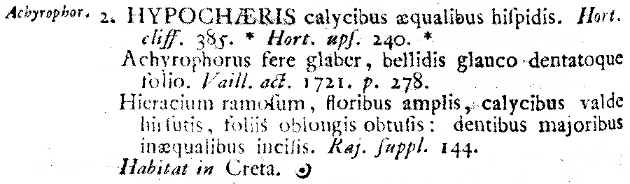 Протолог Hypochoeris achyrophorus L. (Species Plantarum 2: 810. 1753 [1 May 1753]):