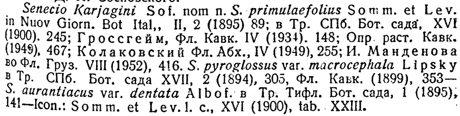 Senecio primulifolius Sommier & Levier. Таким образом, название