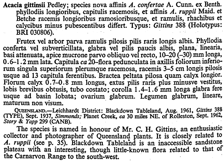 Протолог Acacia gittinsii Pedley (Proceedings of the Royal Society of Queensland 75: 30. 1964):