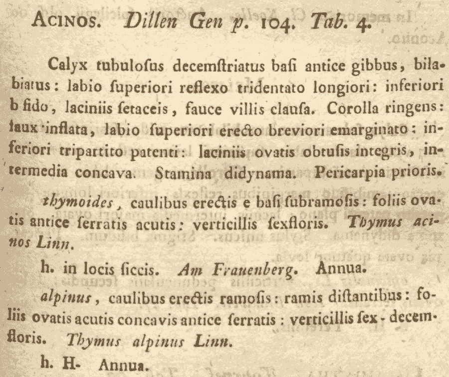 Протолог Thymus alpinus L. (Species Plantarum 2: 591. 1753 [1 May 1753]):