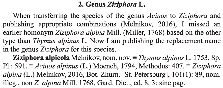 | Андрей Ковальчук | Обнародование комбинации Ziziphora alpicola Melnikov (Новости систематики высших растений 47: 106. 2016):