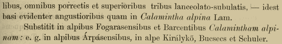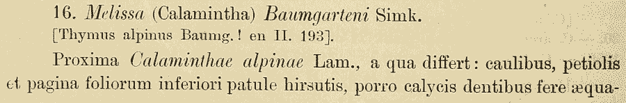 | Андрей Ковальчук | Кстати, никто не знает, где была обнародована комбинация Acinos alpinus ssp. baumgartenii (Simonk.) Pawl.? В основных базах данных она либо отсутствует вообще, либо приводится без указания места публикации. |