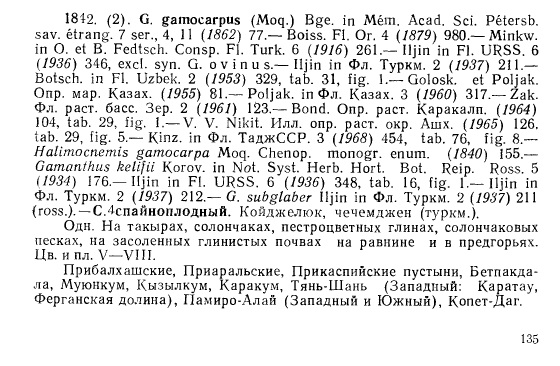 | Наталья Гамова | Во "Флоре Туркмении", 1937. Т. 2 с. 211 есть вид Gamanthus subglaber Iljin - Спайноцветник голый.