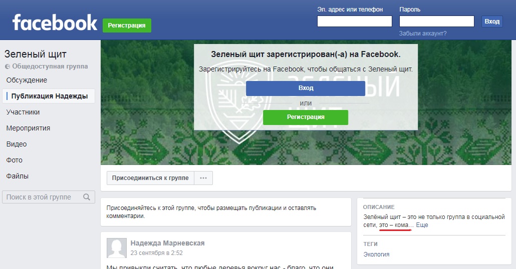 Если у этого "зелёного щита" все посты такие, то описание их группы, автоматически сокращённое системой - очень к месту: