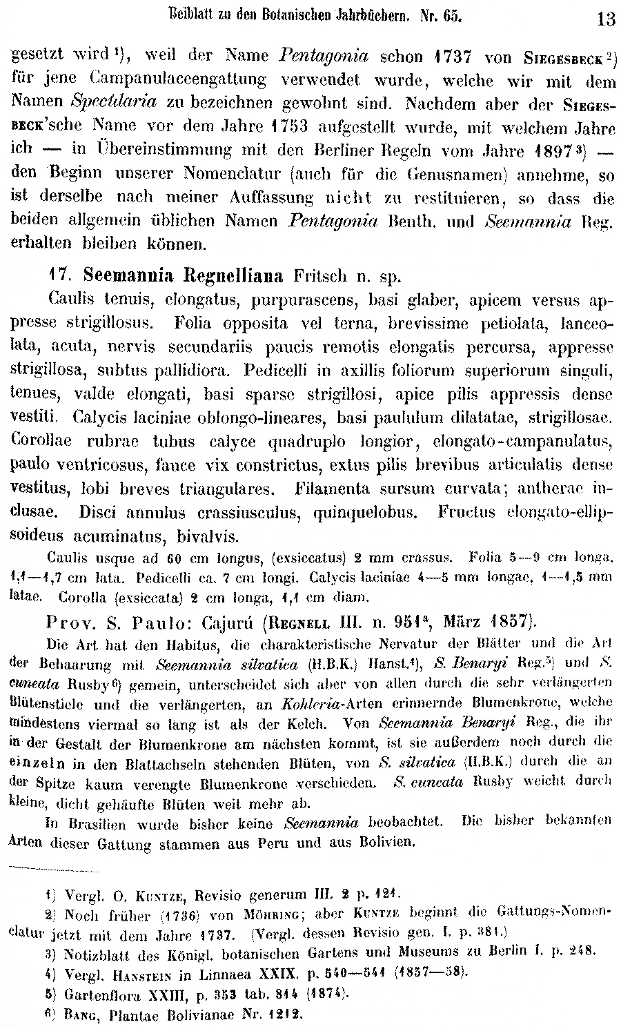 Протолог Seemannia regnelliana Fritsch (Botanische Jahrbücher für Systematik, Pflanzengeschichte und Pflanzengeographie 29 (Beibl. 65): 13. 1900):