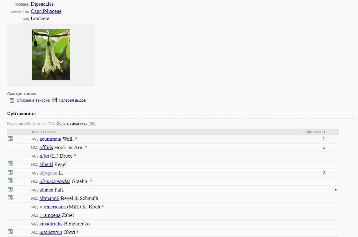 | Юрий Постников | 1. Когда открываем перечень видов рода, видим, фактически, таблицу:
