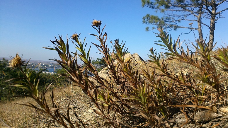окр.Феодосии сегодня. цветы желтые, листочки жесткие и острые.. сколько не разбиралась с нашими цветами этот никак не определялся почему-то. и в гербарии без имени пока