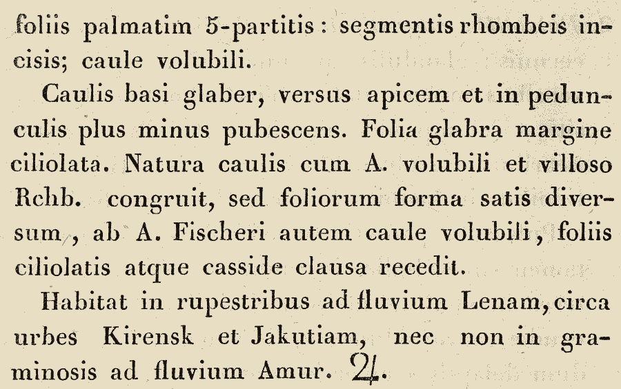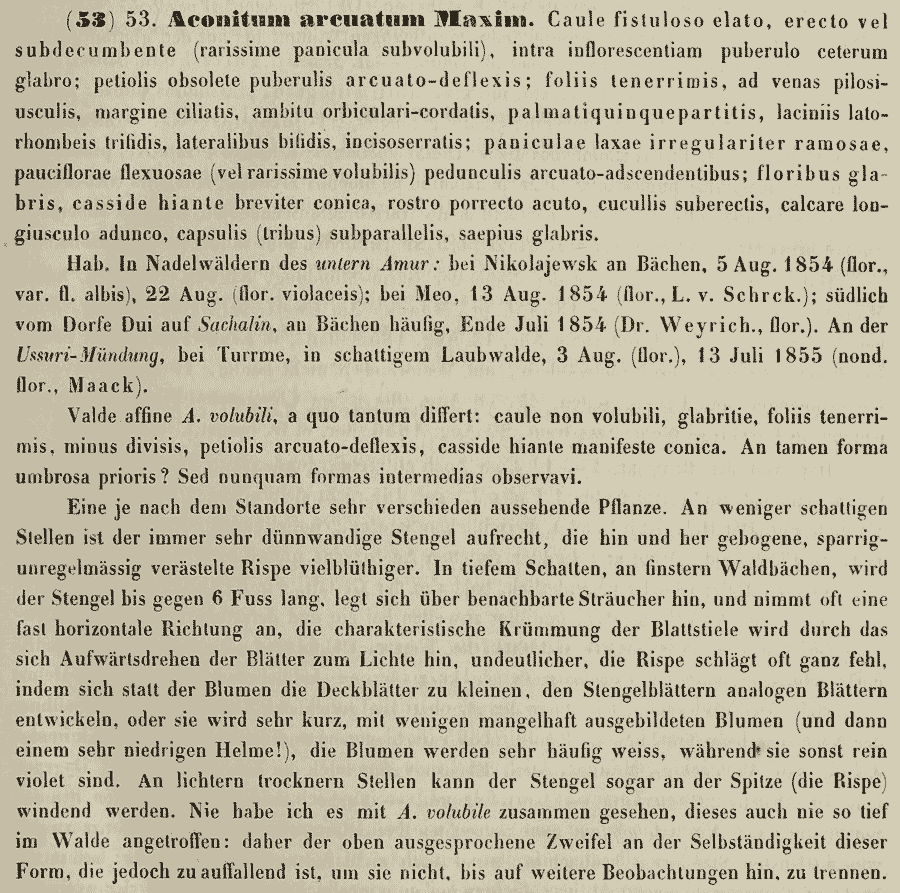 | Андрей Ковальчук | Протолог Aconitum arcuatum Maxim. (Mémoires présentés à l'Académie impériale des Sciences de St. Petersbourg par divers Savans et dans ses assemblées (Primitiae Florae Amurensis) 9: 27. 1859):