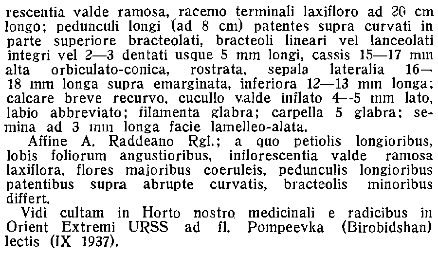 | Андрей Ковальчук | Комбинация Aconitum tokii ssp. birobidshanicum (Worosch.) Worosch. у нас в базе сейчас подчинена записи A. tokii auct. Наверное, правильнее было бы завести отдельную запись Aconitum tokii Nakai и подчинить эту комбинацию ей. |