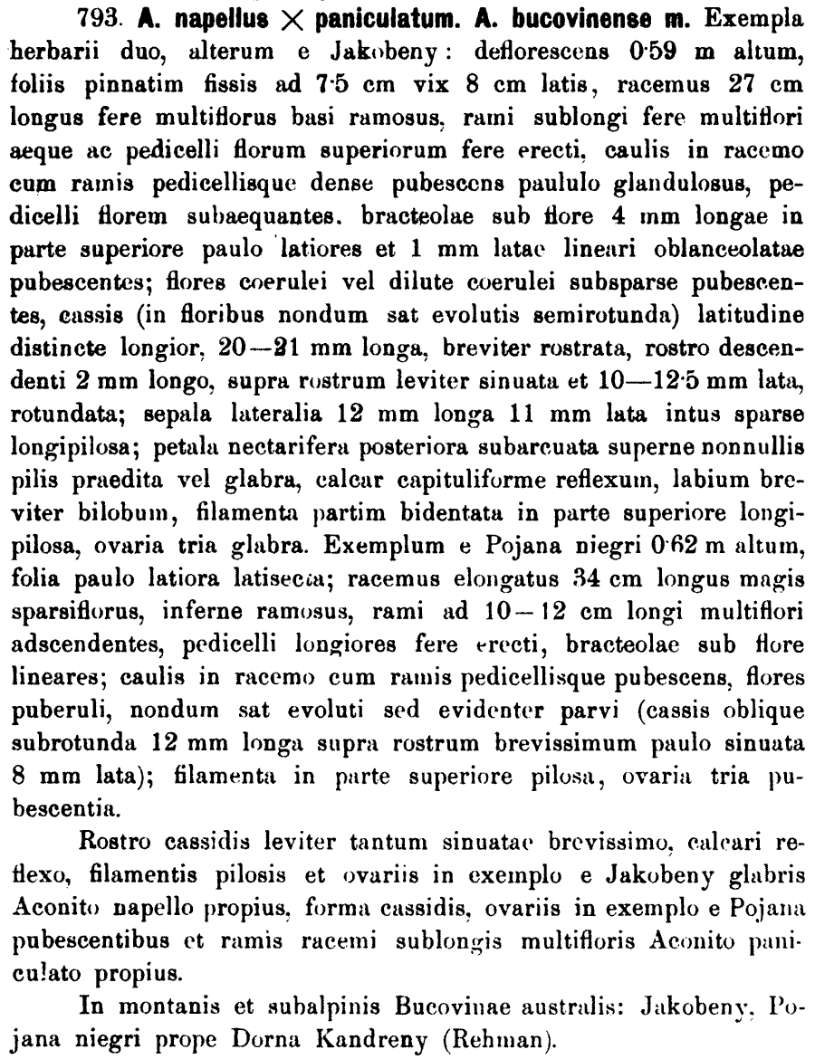 Aconitum × bucovinense Zapał. (Bulletin International de l’Académie des Sciences de Cracovie. Classe des Sciences Mathématiques et Naturelles 1908(3): 144. 1908)