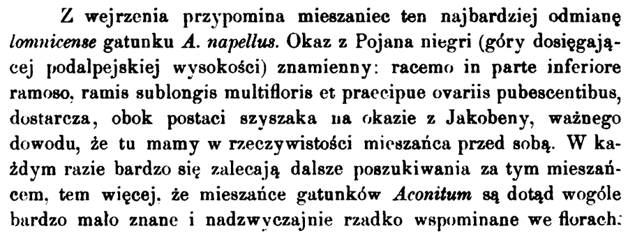 Протолог Aconitum bucovinense Zapal. (Rozprawy Wydziału Matematyczno-Przyrodniczego Akademii Umiejętności. Dział B. Nauki biologiczne. Seria III, 8: 89(-90). 1908):