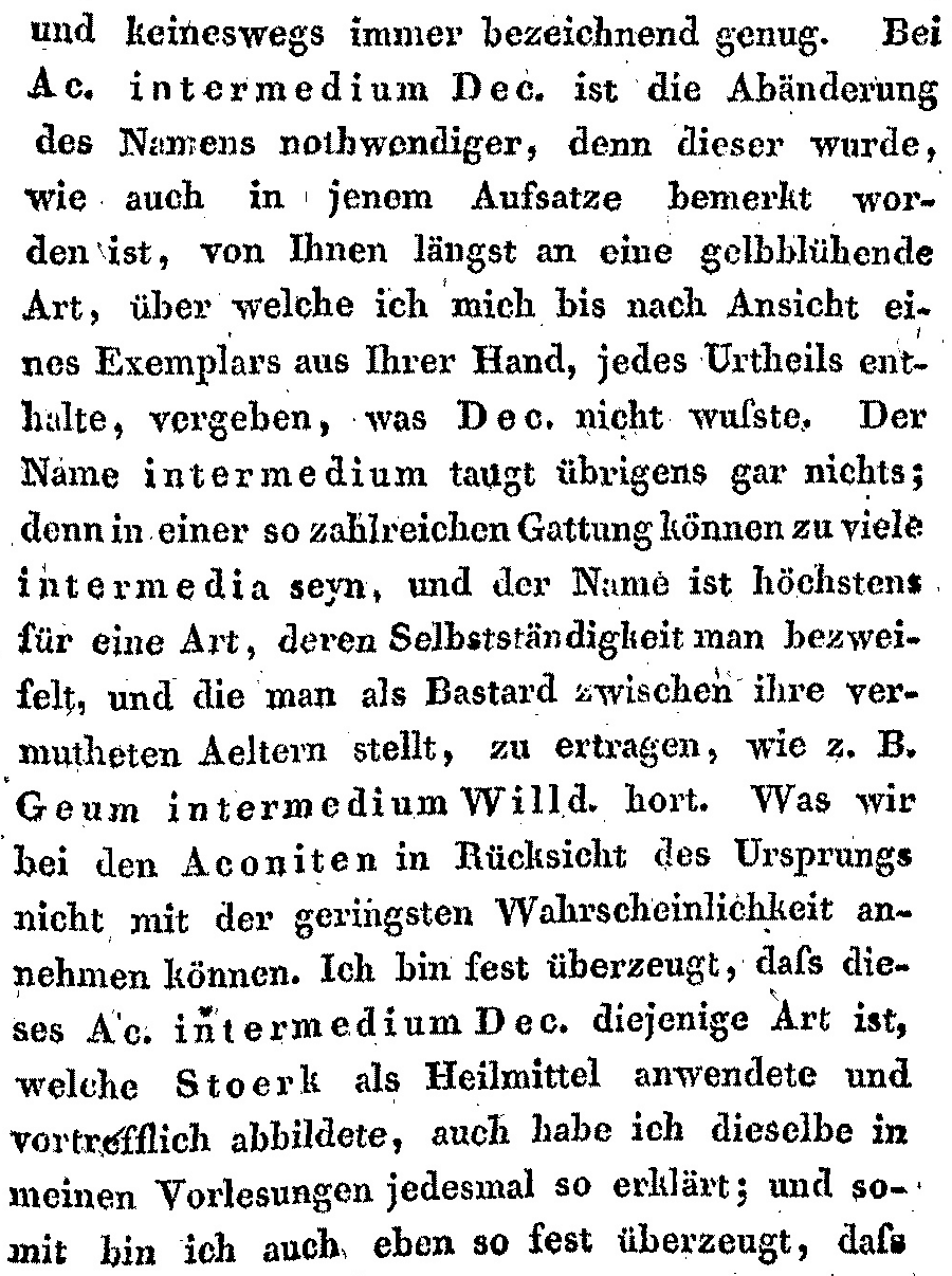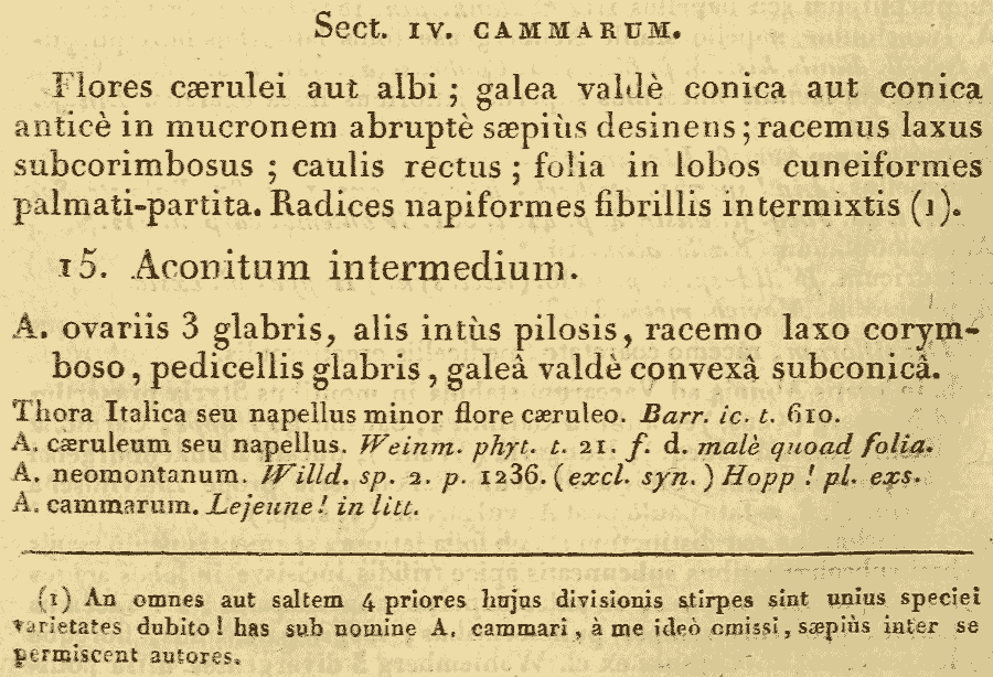Протолог Aconitum × intermedium DC., nom. illeg. (Regni Vegetabilis Systema Naturale, sive Ordines, Genera et Species Plantarum Secundum Methodi Naturalis Normas Digestarum et Descriptarum 1: 374(-375). 1818), non A. intermedium Hoppe ( Neues Botanisches Taschenbuch 224. 1810):