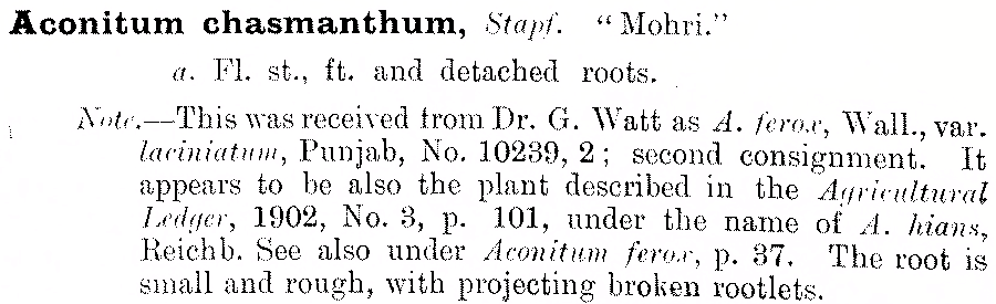 | Андрей Ковальчук | Первое упоминание названия Aconitum chasmanthum Stapf (можно ли считать это действительным обнародованием?) (The Museum Report: A descriptive list of the donations for the years 1895 - 1902 (Pharmaceutical Society of Great Britain): 2. 1903):