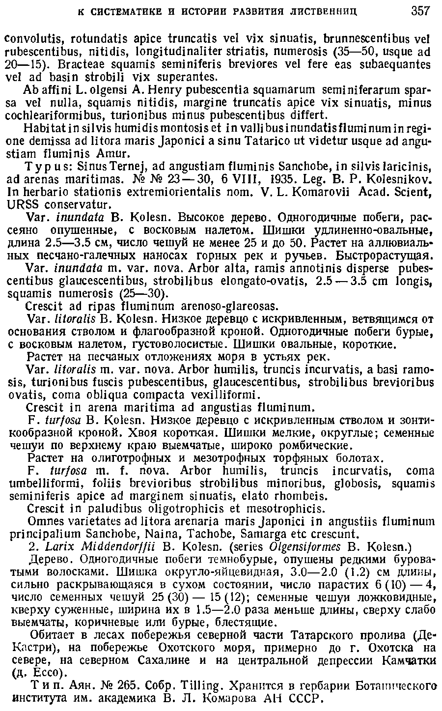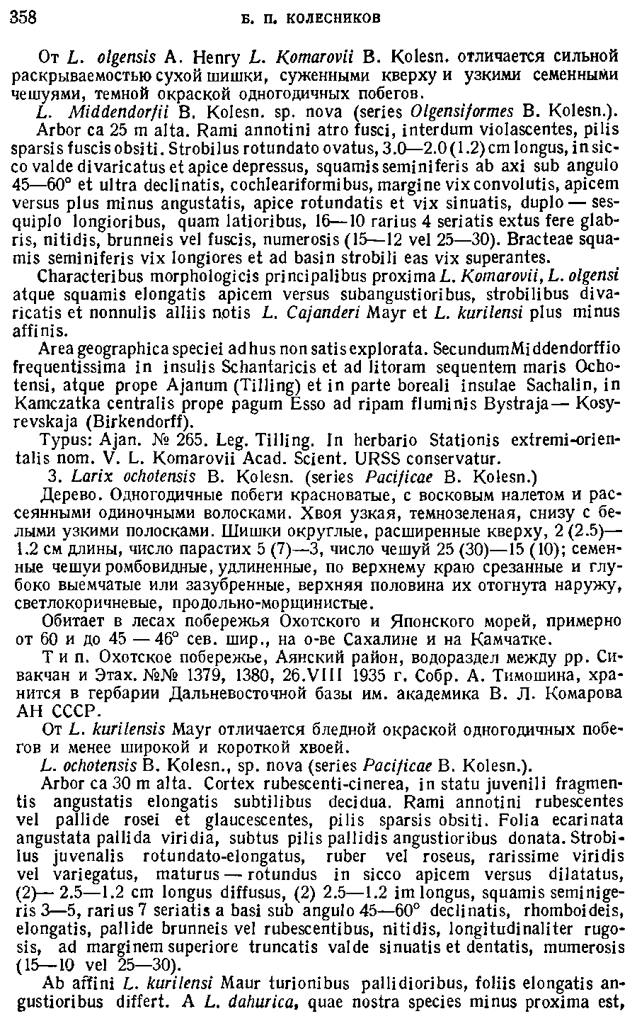 | Андрей Ковальчук | Протолог Larix middendorffii Kolesn. (Материалы по истории флоры и растительности СССР 2: 357. 1946) и Larix ochotensis Kolesn. (Материалы по истории флоры и растительности СССР 2: 358. 1946):