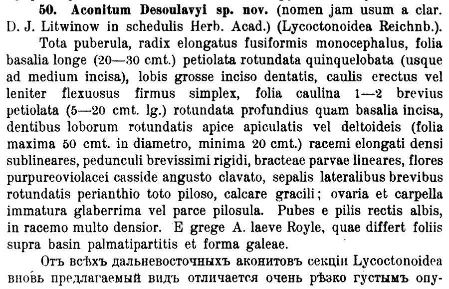 Протолог Aconitum desoulavyi Kom. (Известия Императорскаго ботаническаго сада Петра Великаго // Bulletin du Jardin Imperial Botanique de Pierre le Grand 16(1): 168(-169). 1916):