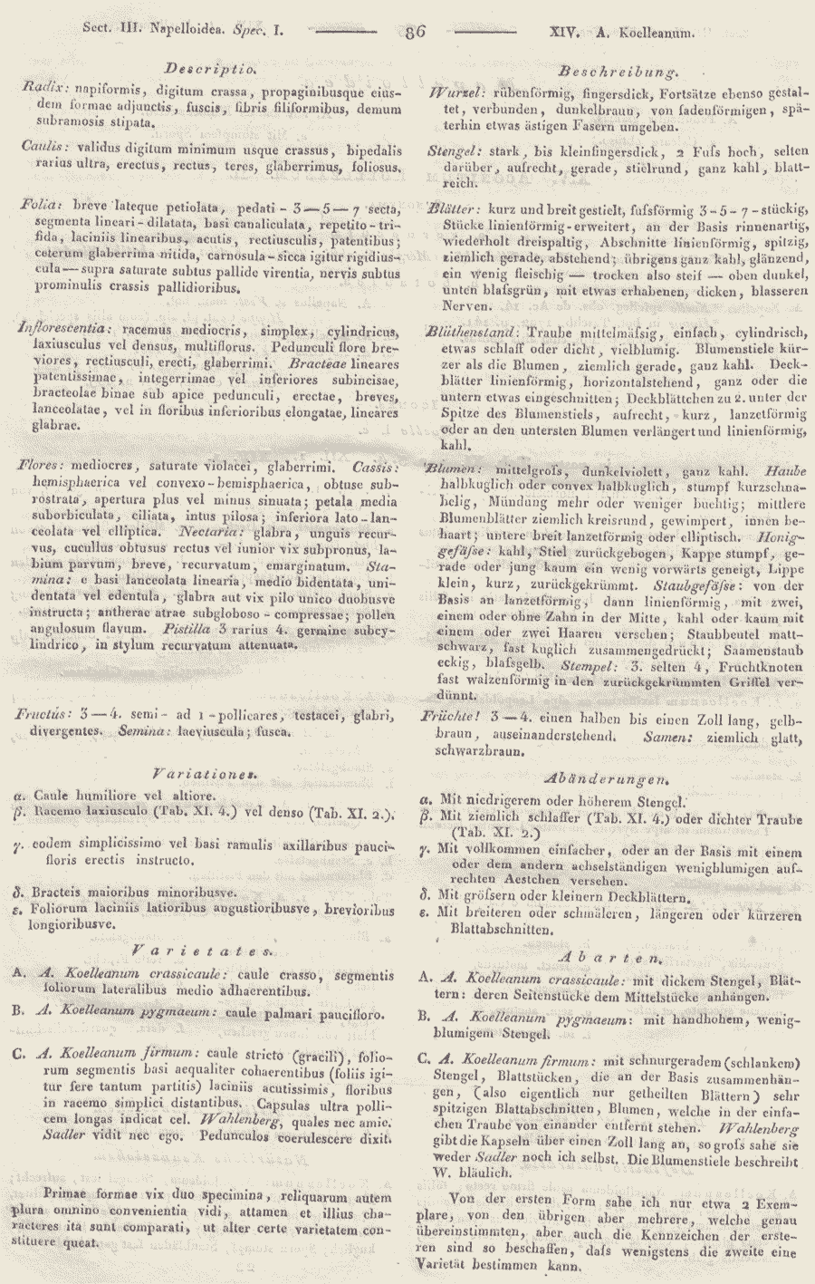 | Андрей Ковальчук | Описание и иллюстрация (лектотип; designated by Starmühler W. & Mitka J. in Thaiszia 10: 120. 2001) A. firmum Rchb. из работы Г. Г. Л. Райхенбаха "Monographia Generis Aconiti": 69(-70), t. XIV, 1. 1820 (как Aconitum koelleanum var. firmum):