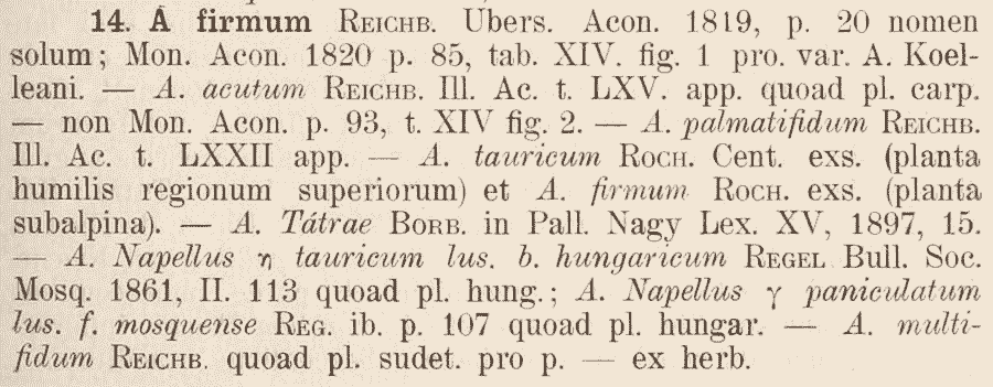 Протолог Aconitum firmum Rchb. (Uebersicht der Gattung Aconitum, Grundzüge einer Monographie derselben 20(-21). 1819 [28 Mar 1819]):
