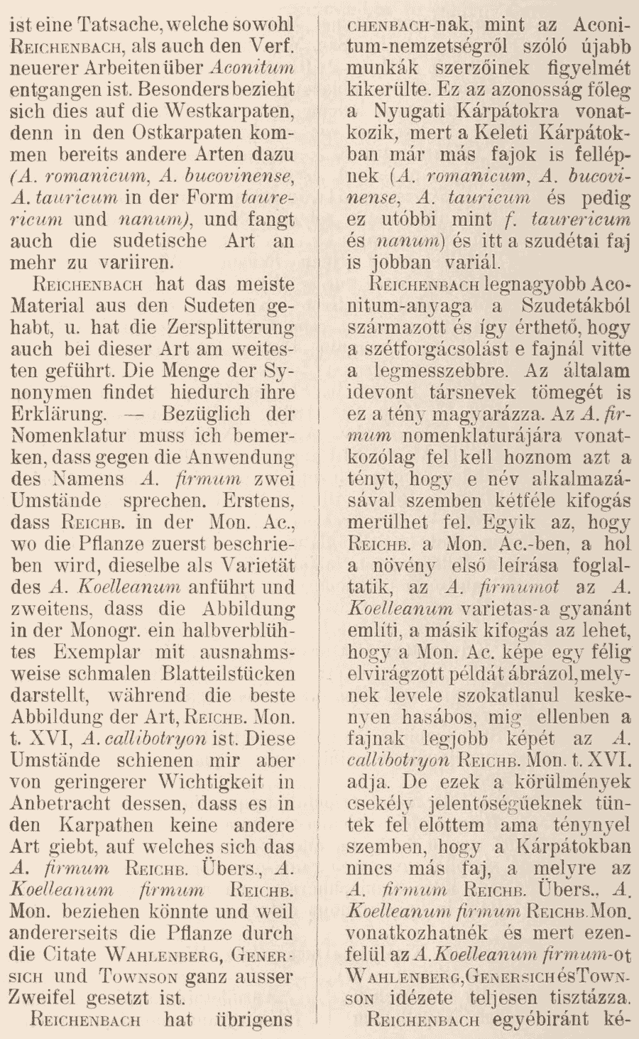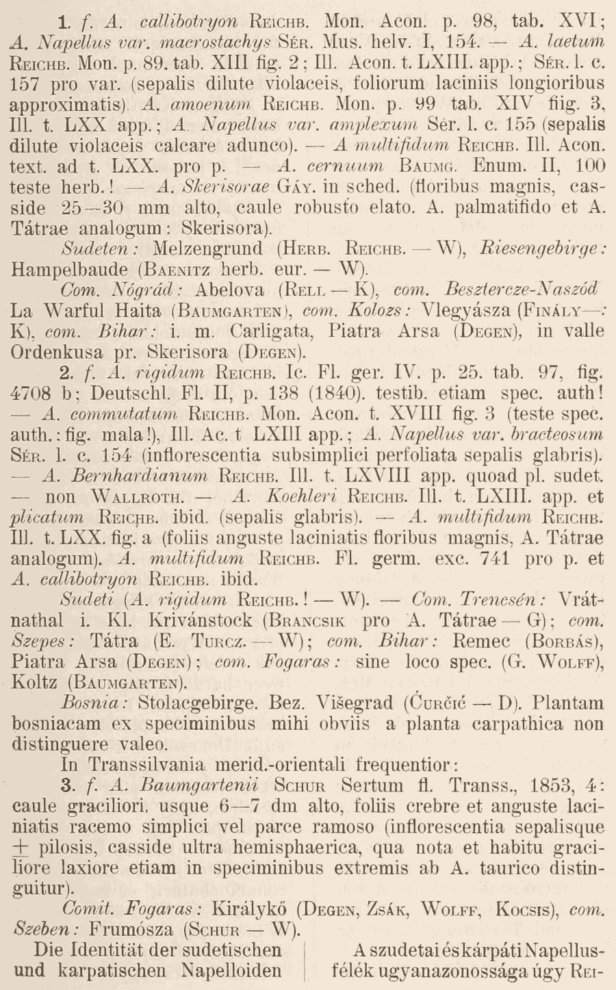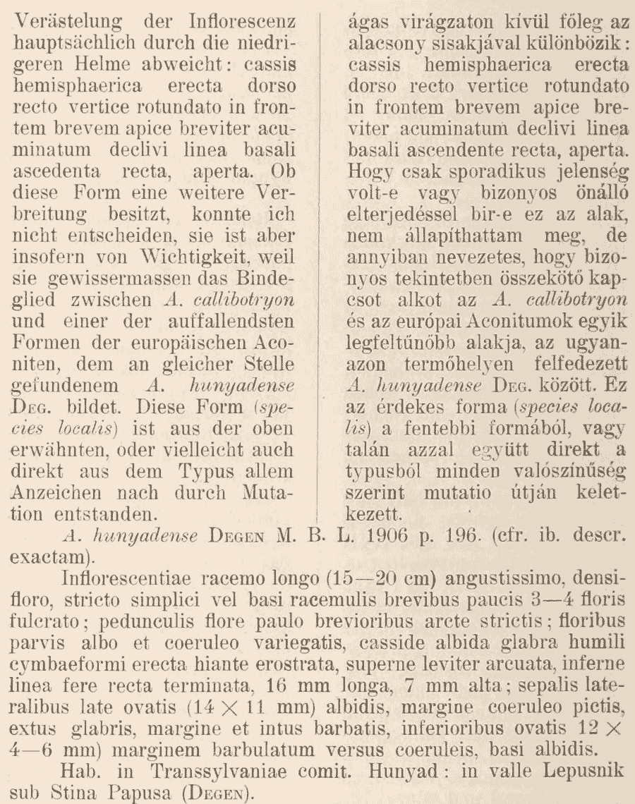 Обнародование комбинации Aconitum skerisorae Gayer (Magyar botanikai lapok 8: 165. 1909 ( pro syn. :