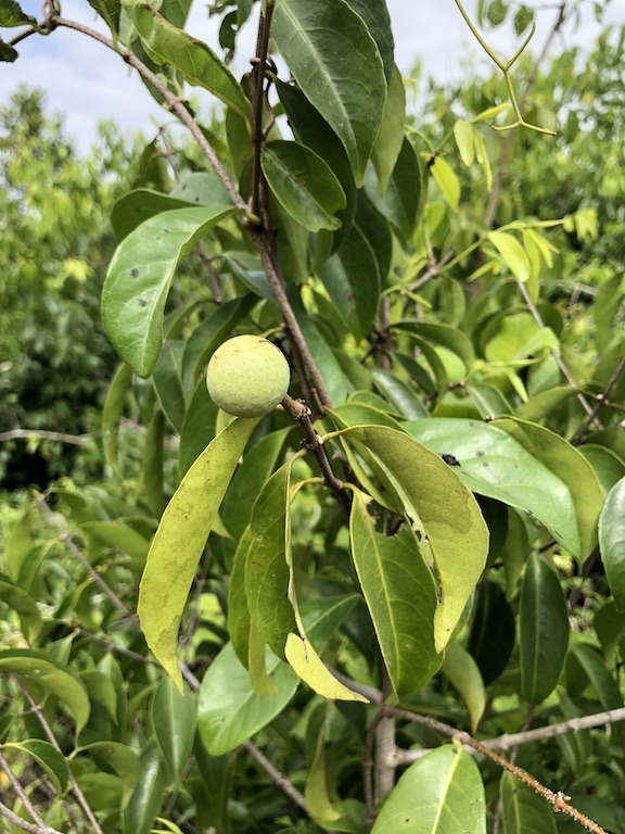 Кустарник или дерево, произрастает в Кении. Тонкие кожистые листья. Плоды круглой формы. Зеленые в процессе созревания. Оранжевые созревшие (декабрь-январь). Внутри плода четыре семечка в сладкой на вкус водянистой пленке, которую не удается раскусить. Фото в атаче.